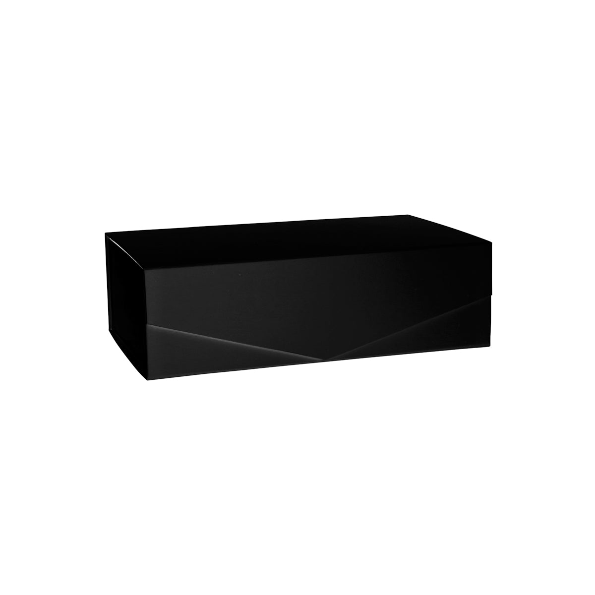 Collapsible hamper boxes — Make every gift special with our elegant collapsible hamper boxes. Featuring a stylish v-shape flap and a convenient magnetic closure, our hamper boxes are just the ticket for bottles, large gifts or a collection of small items.