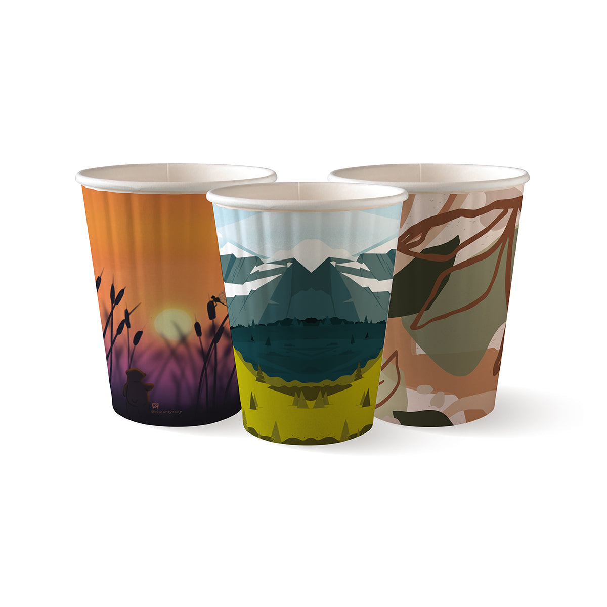 IMAGES AS A GUIDE ONLY. Cartons contain up to three different art cups with new artists featured every two months. Pictured here are designs from the latest Art Series. Unfortunately, we cannot sell individual art cups and cannot guarantee which prints, or which series of prints will be in each carton.