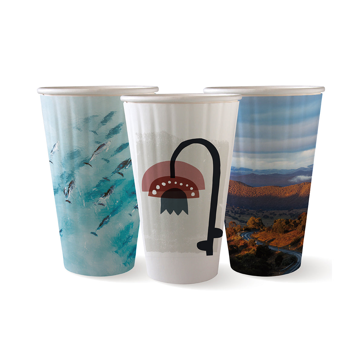 IMAGES AS A GUIDE ONLY. Cartons contain up to three different art cups with new artists featured every two months. Pictured here are designs from the latest Art Series. Unfortunately, we cannot sell individual art cups and cannot guarantee which prints, or which series of prints will be in each carton.