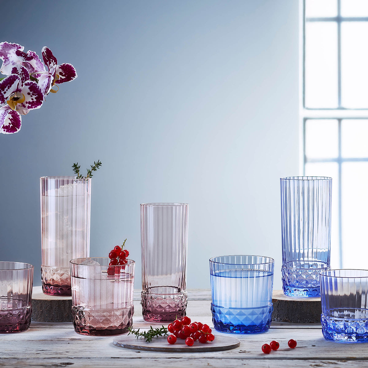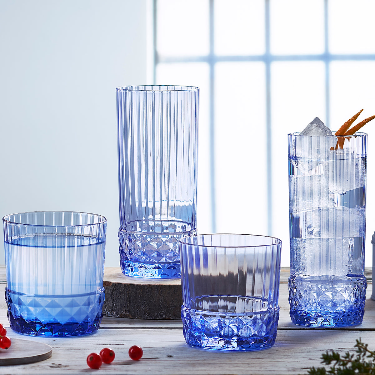 Inspired by the elegant 1920s, Bormioli Rocco's America '20s range exudes glamour. The stunning sapphire blue is fresh and accessible, perfect for those who love subtle colour.