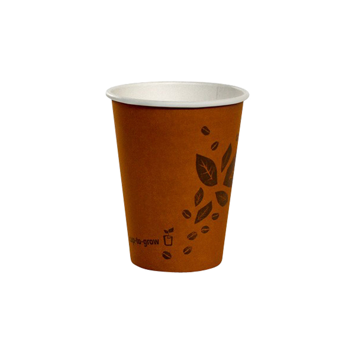 One of the great benefits of the Cup-To-Grow is that it offers a sustainable alternative to traditional take-away paper cups yet maintaining the level of convenience offered by disposable packaging. Unlike traditional paper cups that use a petroleum-based plastic lining, Cups-To-Grow are lined with a bioplastic lining PLA (poly-lactic-acid) harvested from corn starch, natural annually renewable resource.
