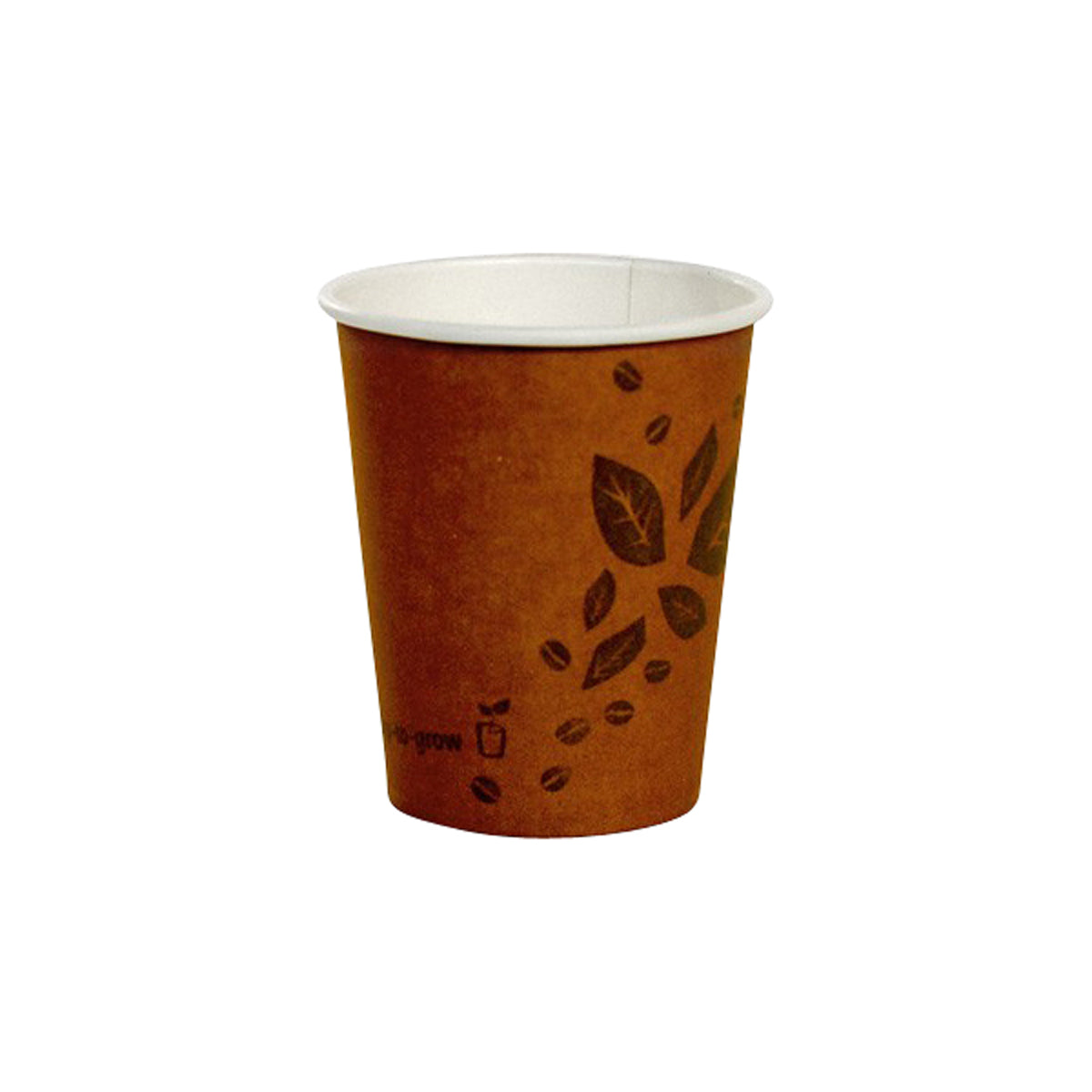 One of the great benefits of the Cup-To-Grow is that it offers a sustainable alternative to traditional take-away paper cups yet maintaining the level of convenience offered by disposable packaging. Unlike traditional paper cups that use a petroleum-based plastic lining, Cups-To-Grow are lined with a bioplastic lining PLA (poly-lactic-acid) harvested from corn starch, natural annually renewable resource.