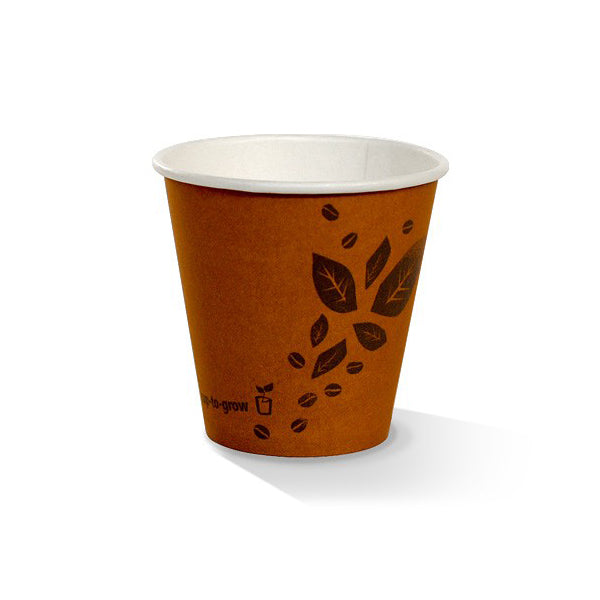 One of the great benefits of the Cup-To-Grow is that it offers a sustainable alternative to traditional take-away paper cups yet maintaining the level of convenience offered by disposable packaging. Unlike traditional paper cups that use a petroleum-based plastic lining, Cups-To-Grow are lined with a bioplastic lining PLA (poly-lactic-acid) harvested from corn starch, natural annually renewable resource.