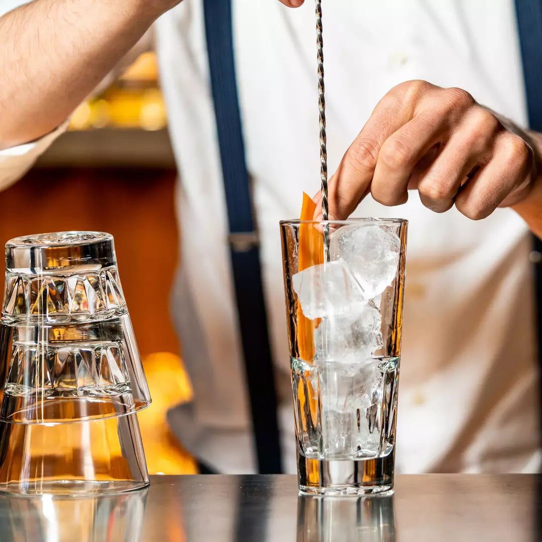 Performance with flair and functionality, Gallery by Libbey has been designed to look as good stacked on a bar as it does served and garnished. A unique faceted design adds interest to each drink, interacting with the liquid and light in beautiful ways. The thick base provides a weighty elegance, planting the drink firmly in place for an elevated drinking experience.