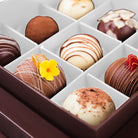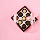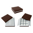 Beautifully presented food grade premium 9 piece chocolate boxes with a matte brown base and lid and removable insert / divider.